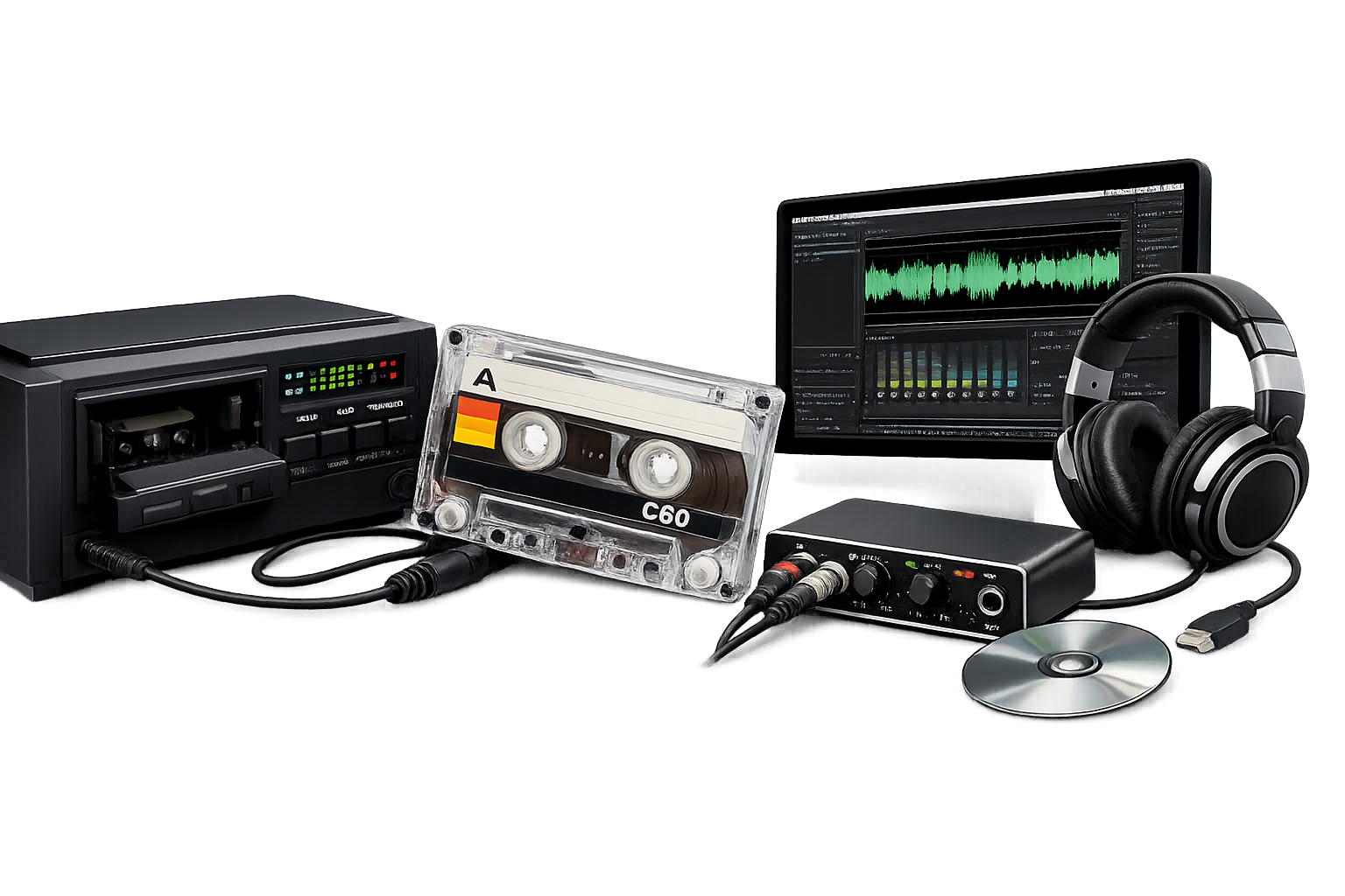 Digitalizamos cintas de audio antiguas con alta fidelidad, preservando la calidad original. Convertimos cassettes y cintas a formatos digitales como MP3 o WAV.